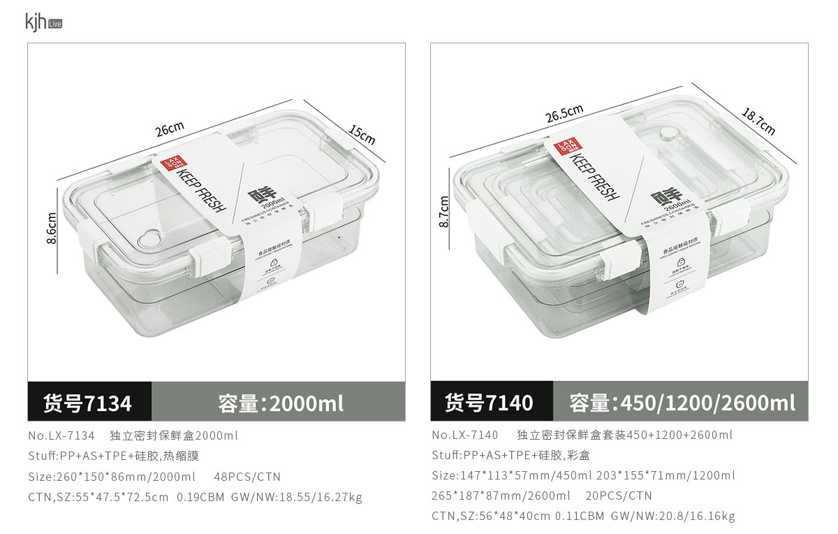 獨立密封保鮮盒450ml/1200ml/2600ml/1250ml/2000ml