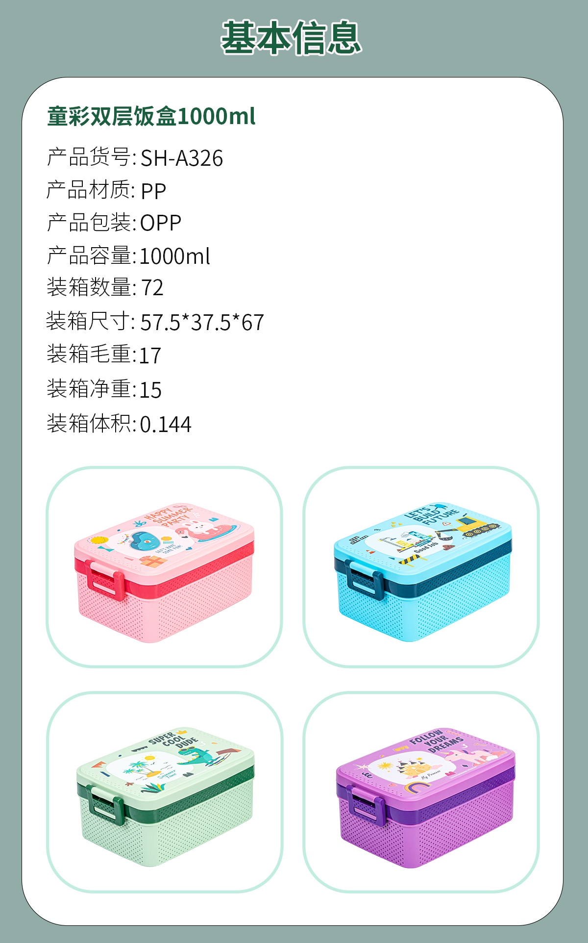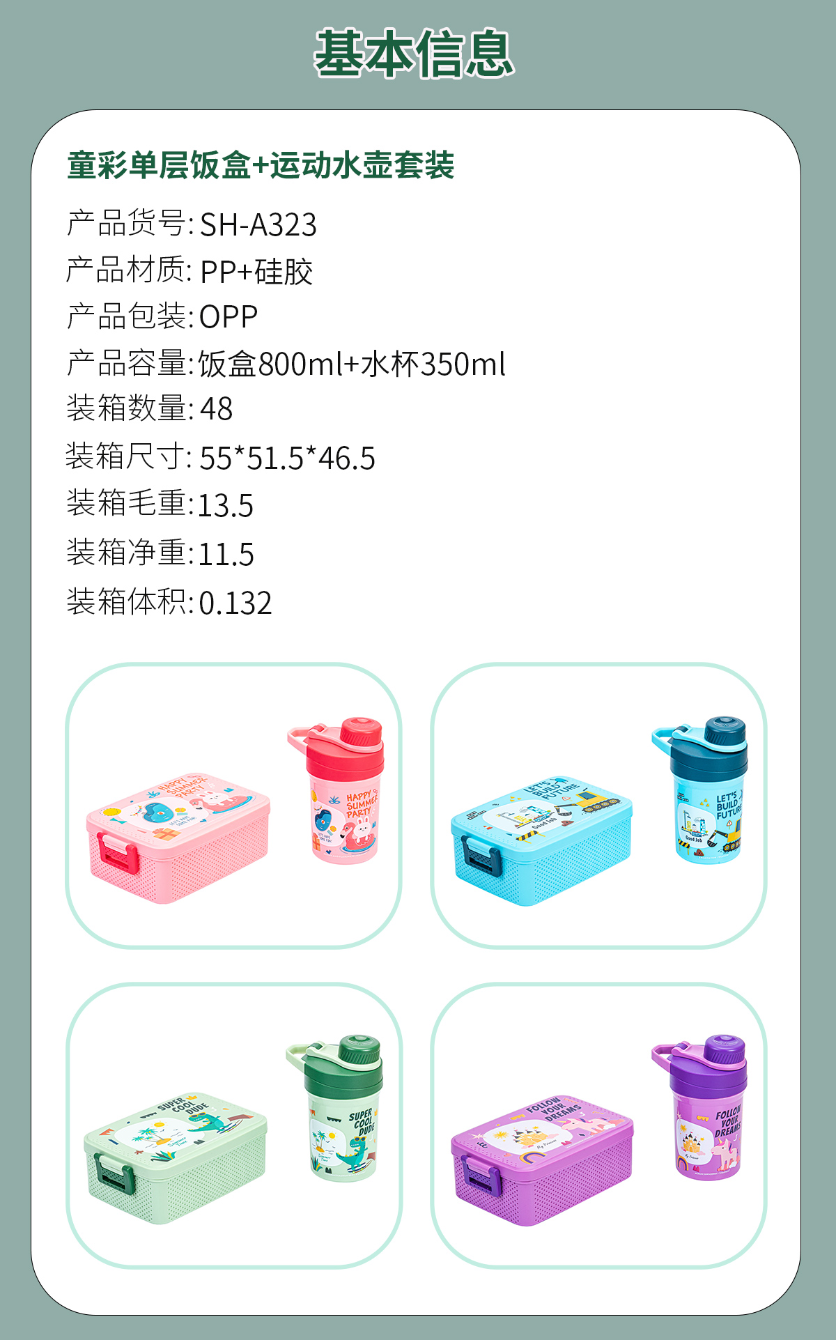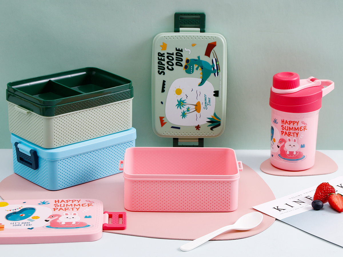 童彩單層/雙層飯盒+運(yùn)動水壺套裝(飯盒800ml/1000ml+水杯350ml