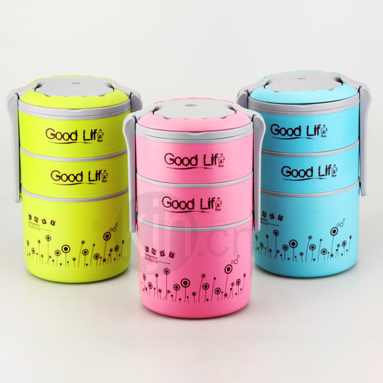 圓型三層保溫飯盒
