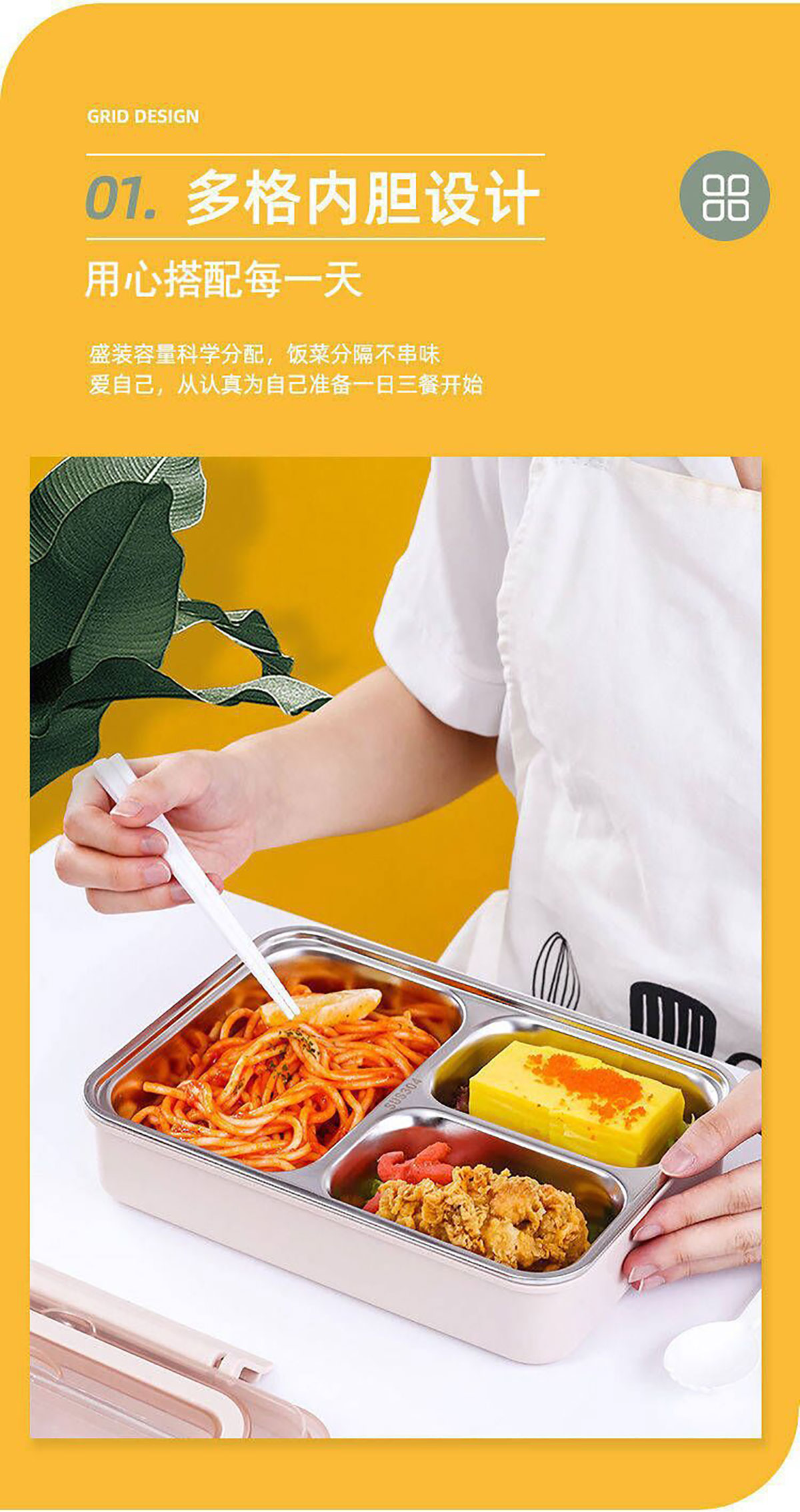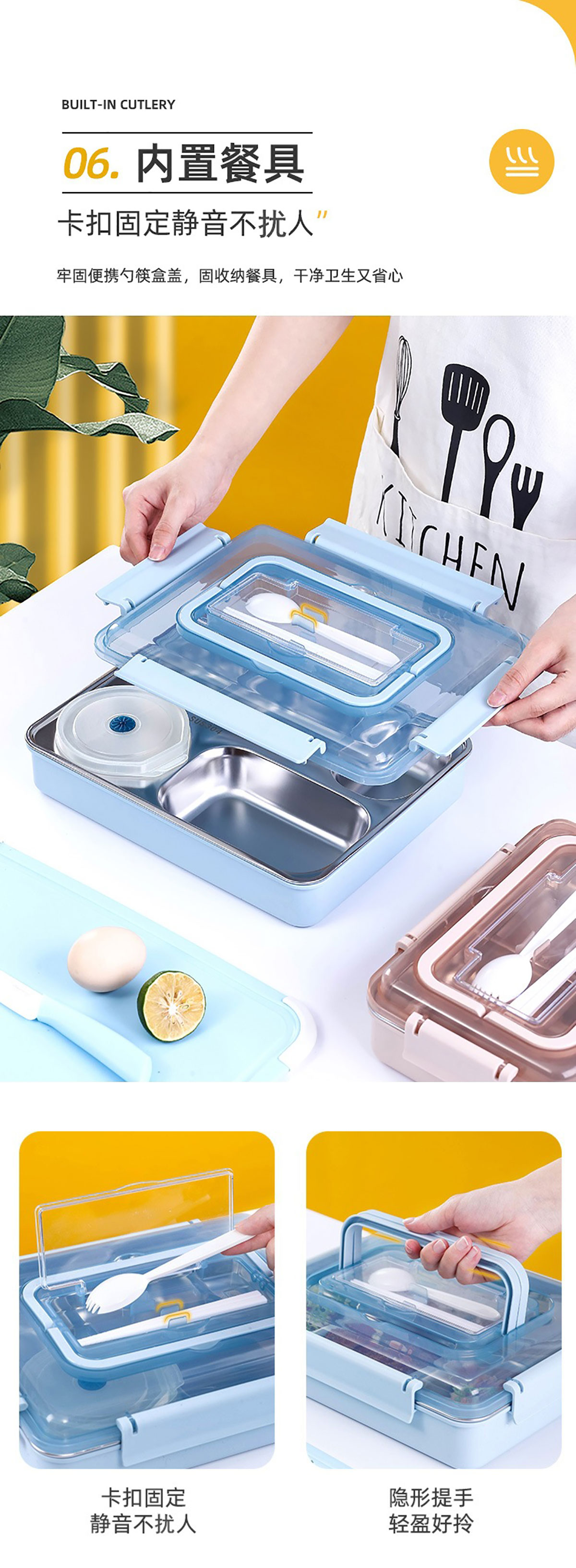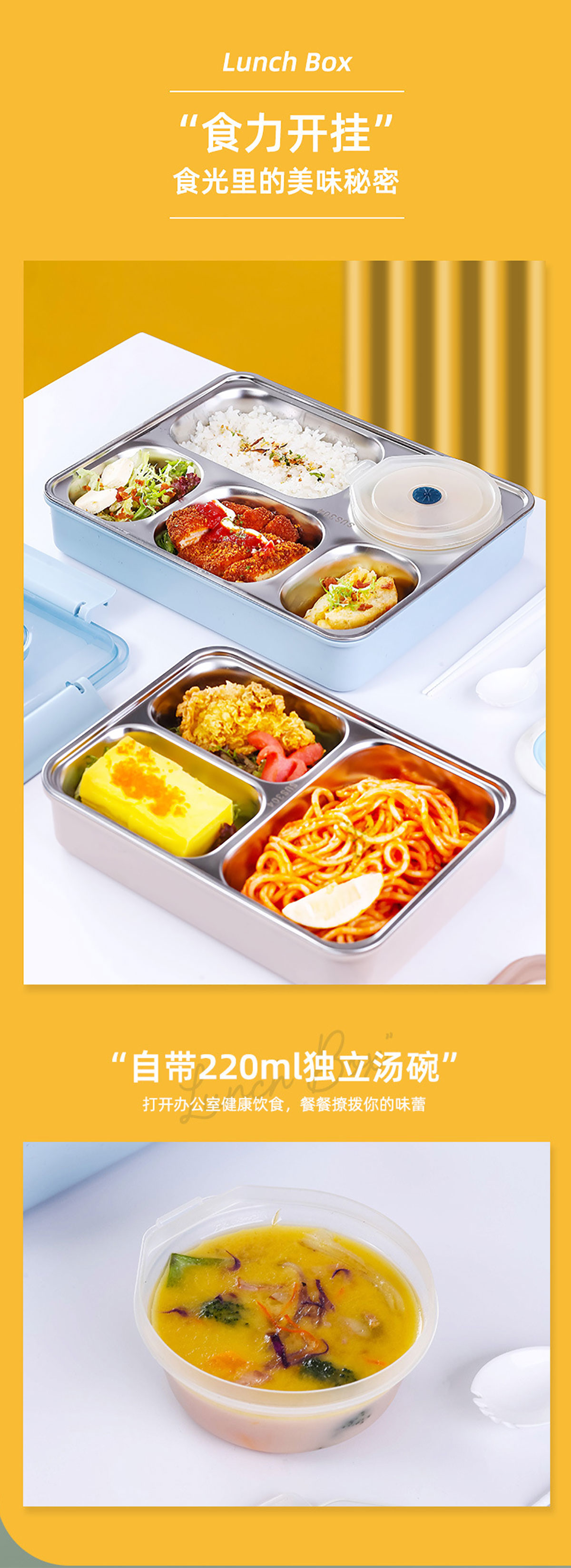 便捷式不銹鋼飯盒 小號(三格/四格)大號(四格/五格)