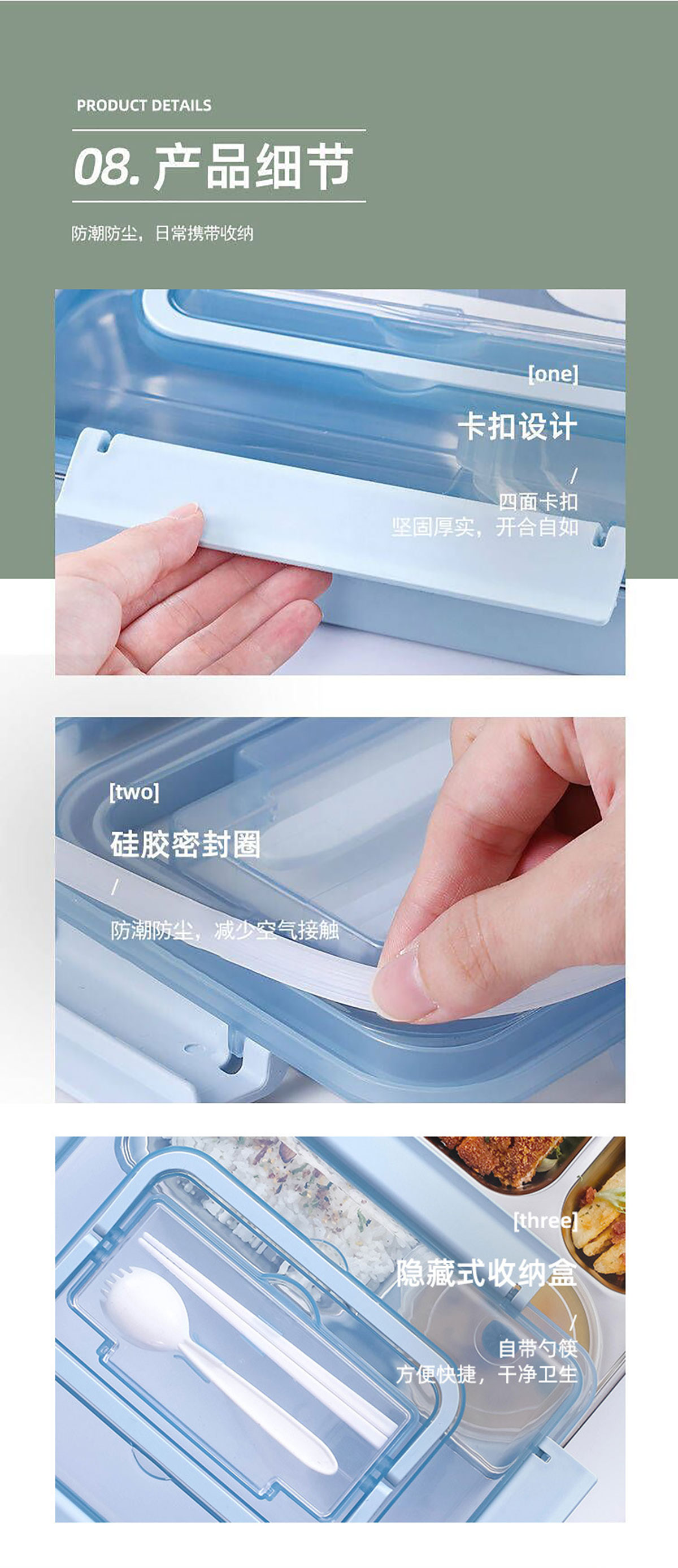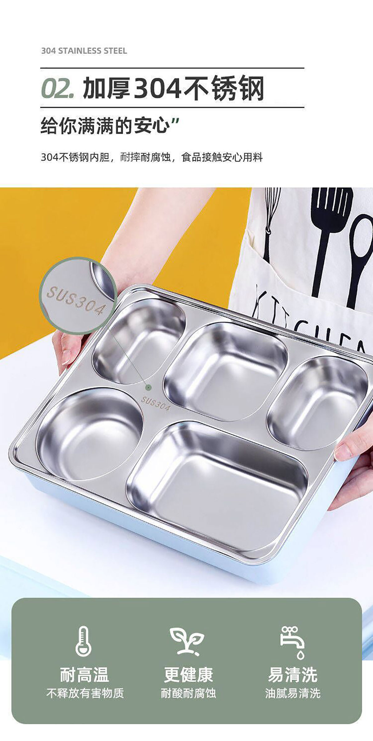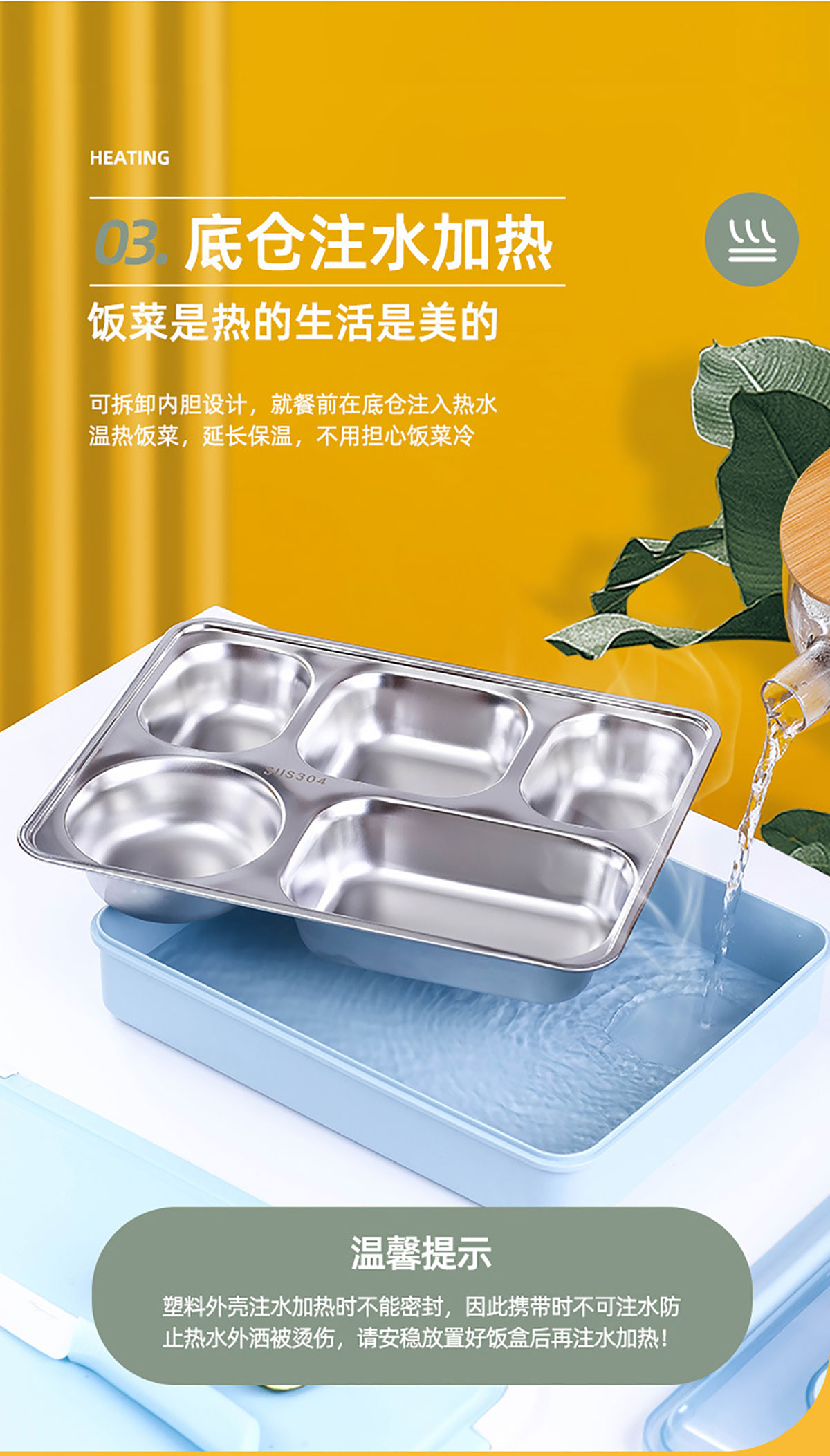 便捷式不銹鋼飯盒 小號(三格/四格)大號(四格/五格)