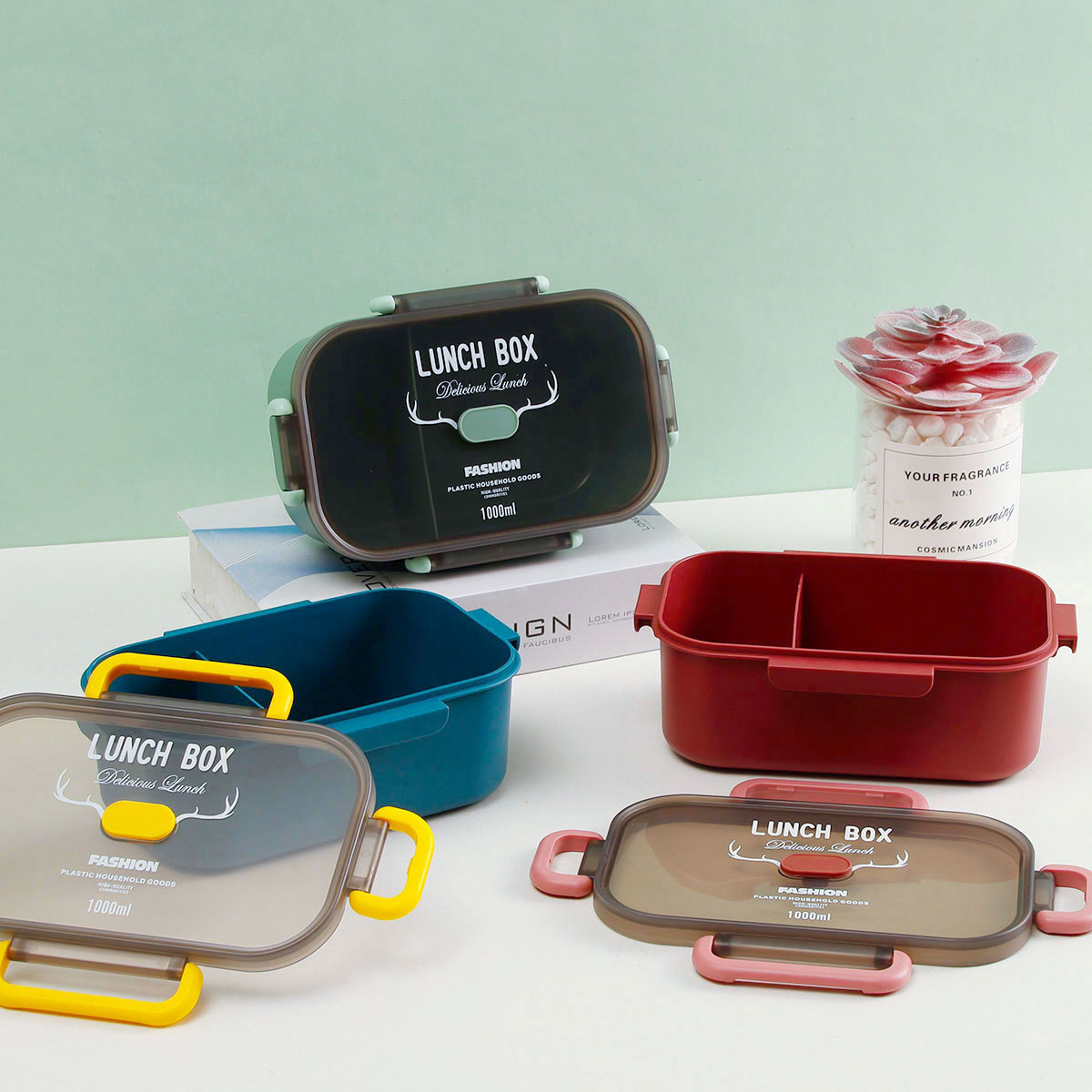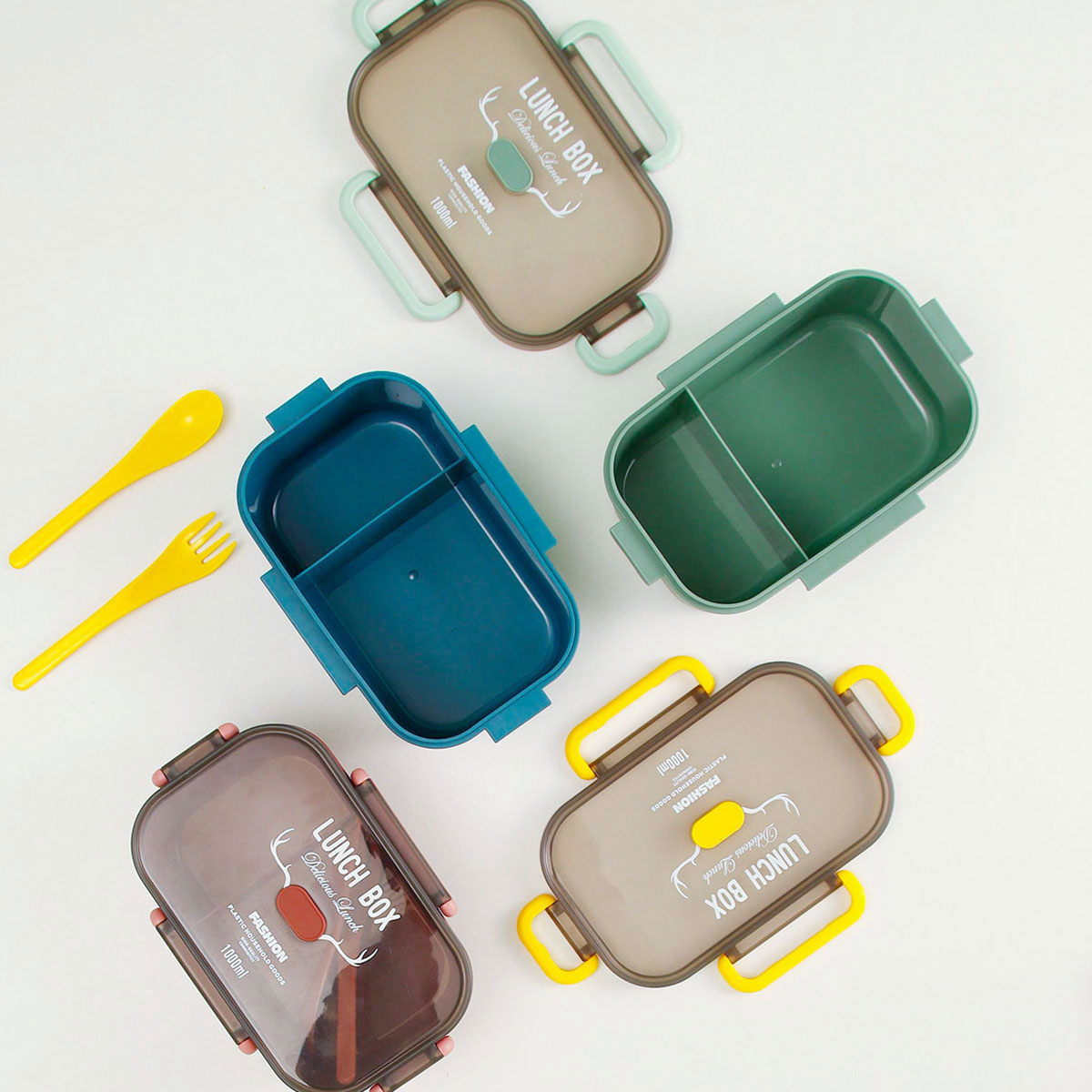長(zhǎng)方單層分格密封飯盒(1000ml)+圓形/八角隨行杯(500ml)