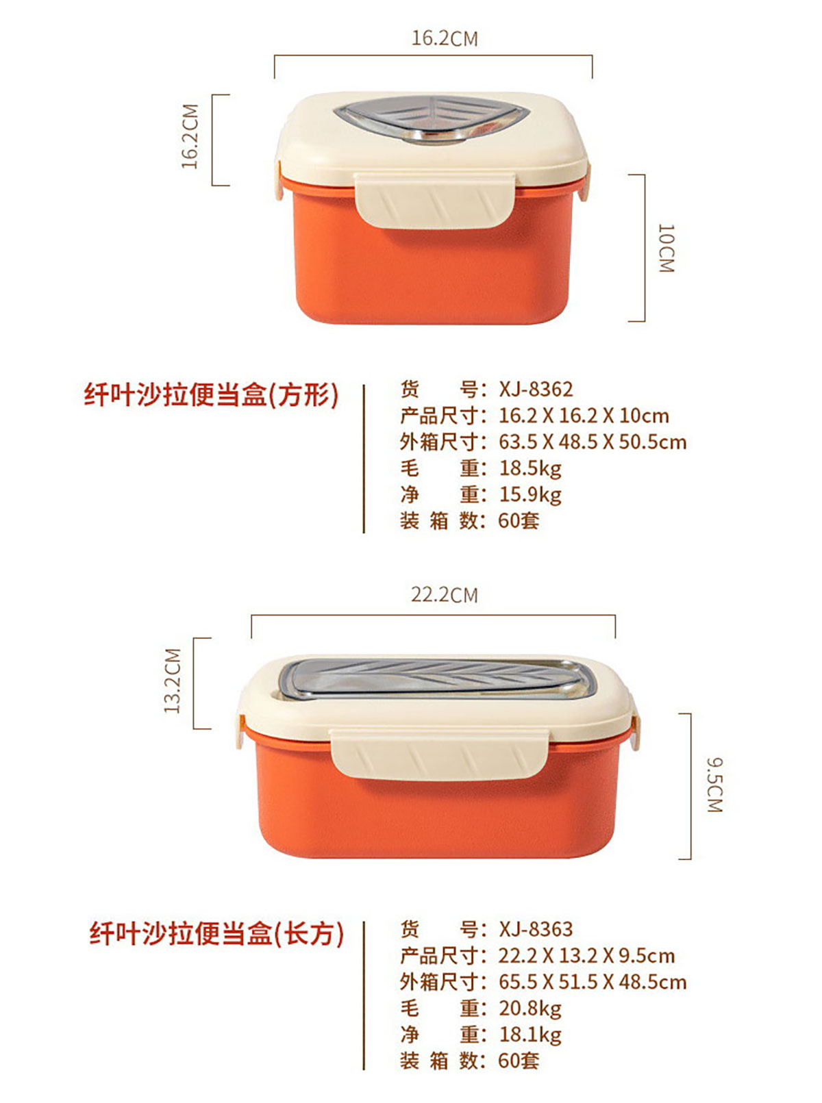 HH-XJ8362(正方形):162*162*100mm/容量:底750ml+格360ml