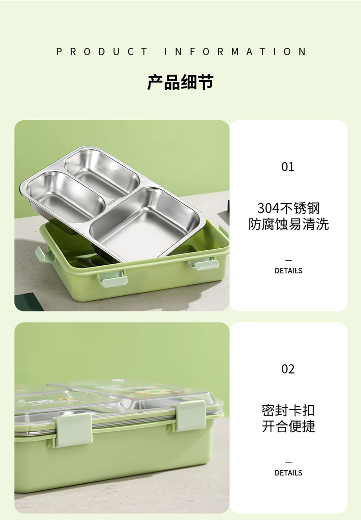 3D噴繪大三格/四格帶醬盒/四格帶碗加高不銹鋼餐盒