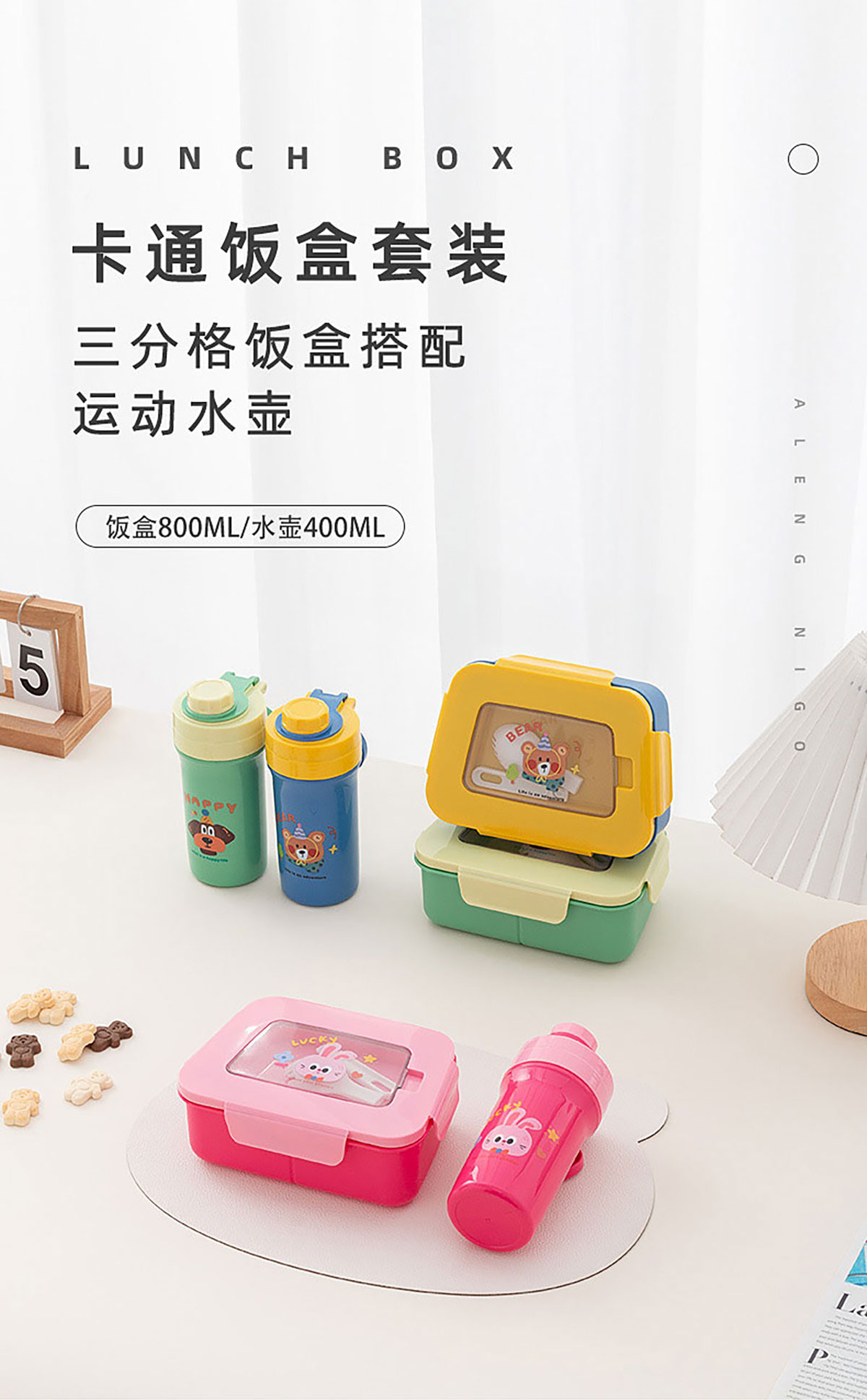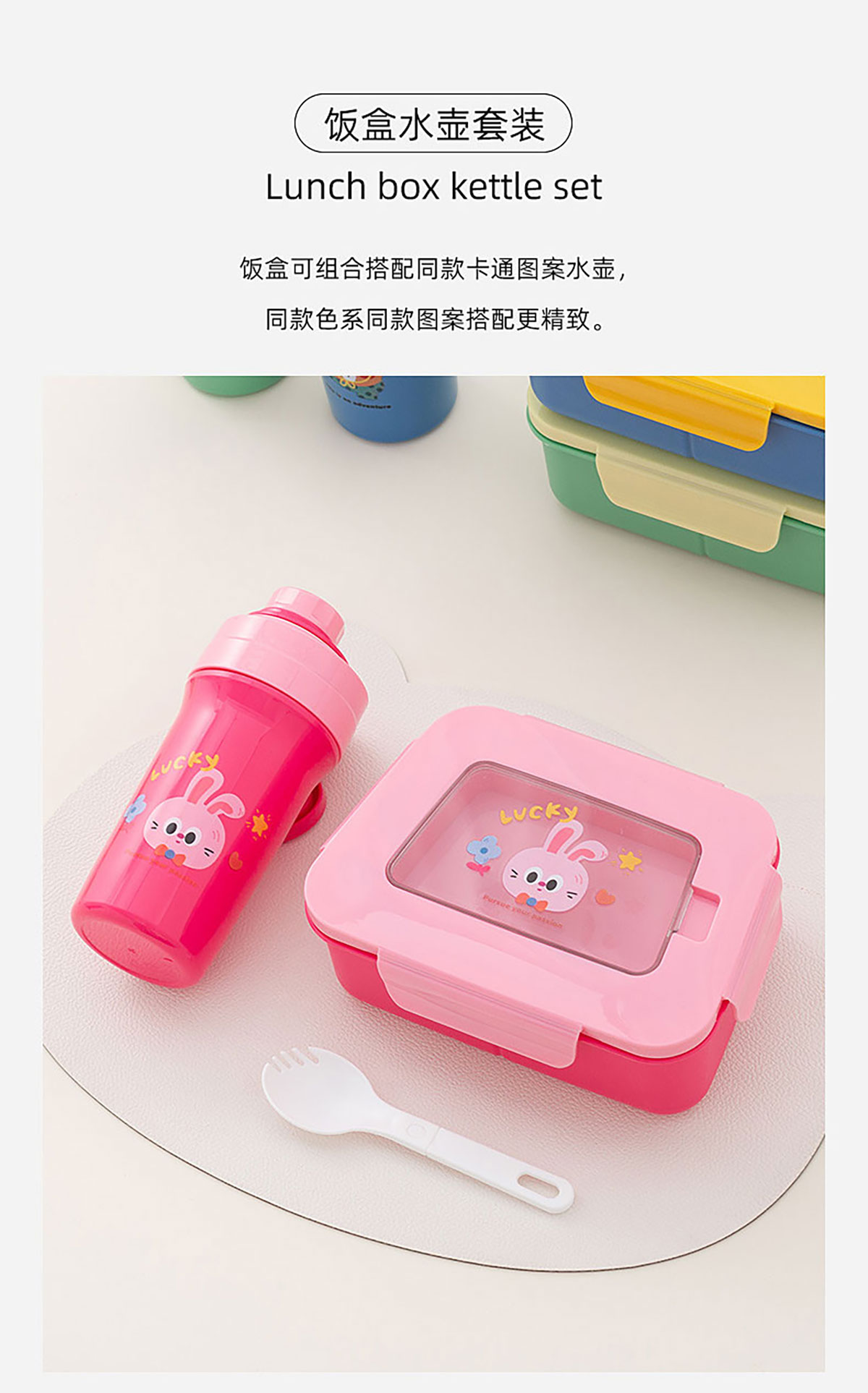 卡通三分格小飯盒/手提運(yùn)動(dòng)水壺/飯盒水壺套裝