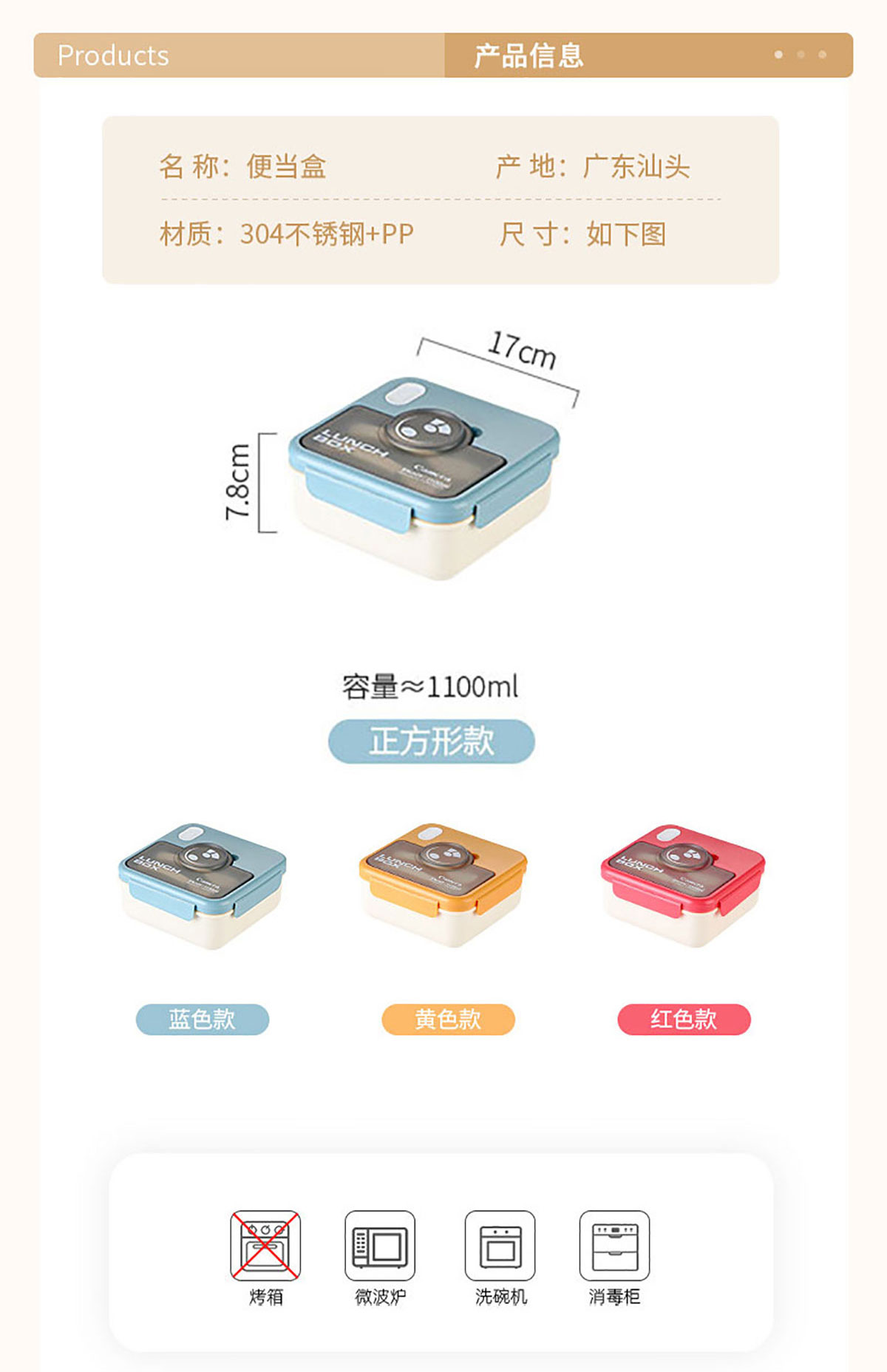 Size: 170*170*78mm/1100ml