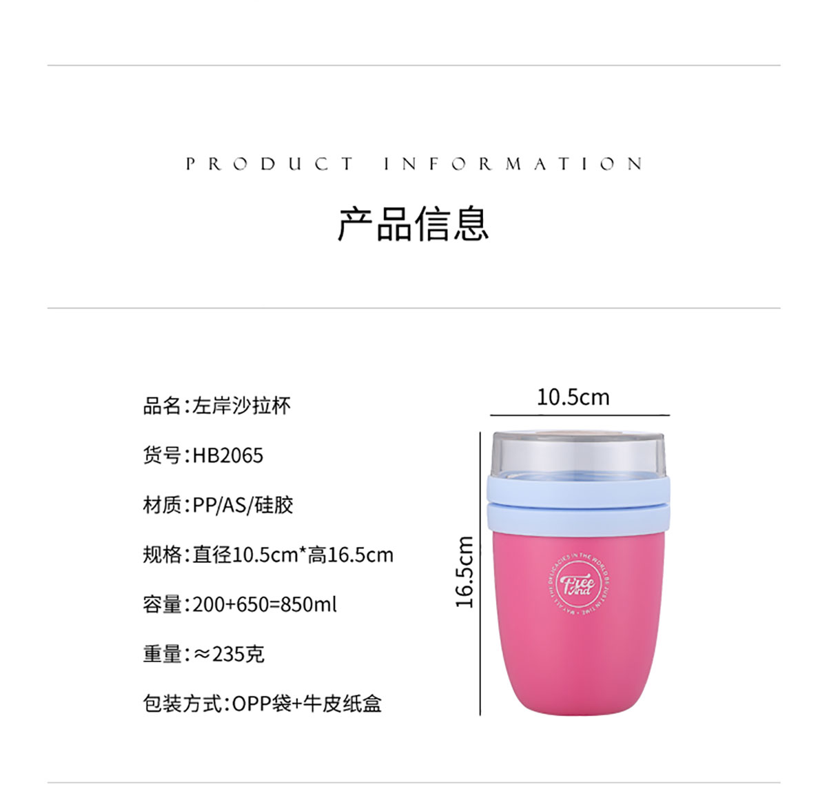 SWY-HB2065:?105*高165mm/200+650=850ml