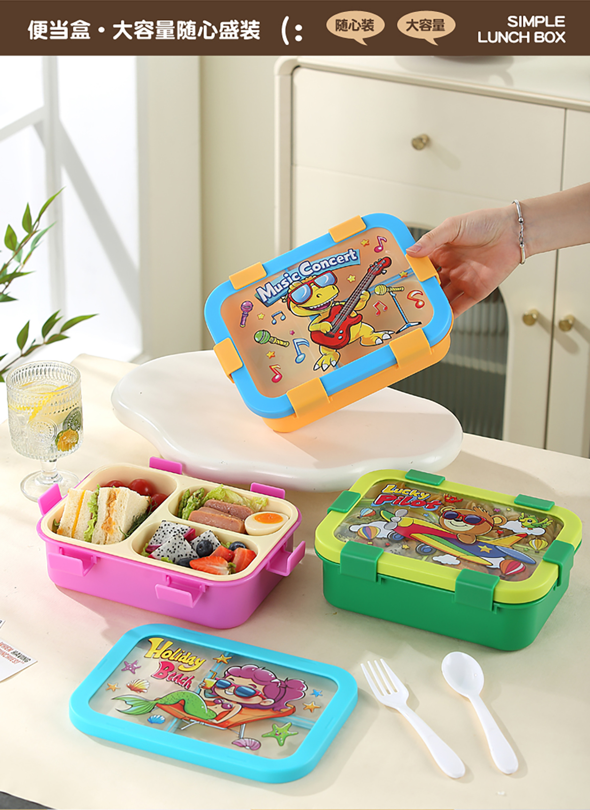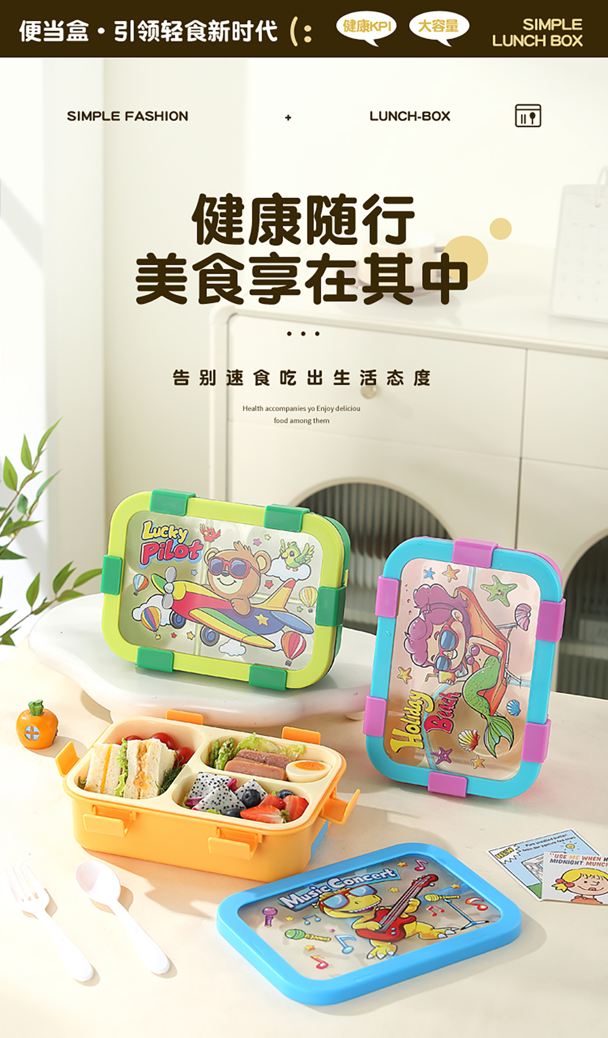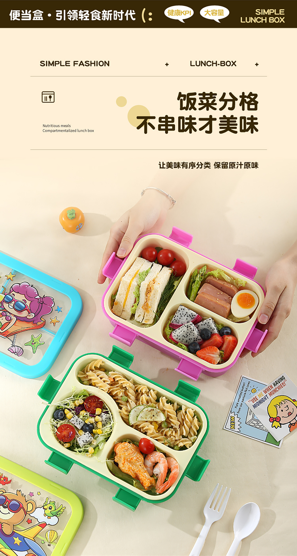 星樂便當(dāng)盒PP/卡通款 下單可選(三格700ml)/(三格碗型650ml)