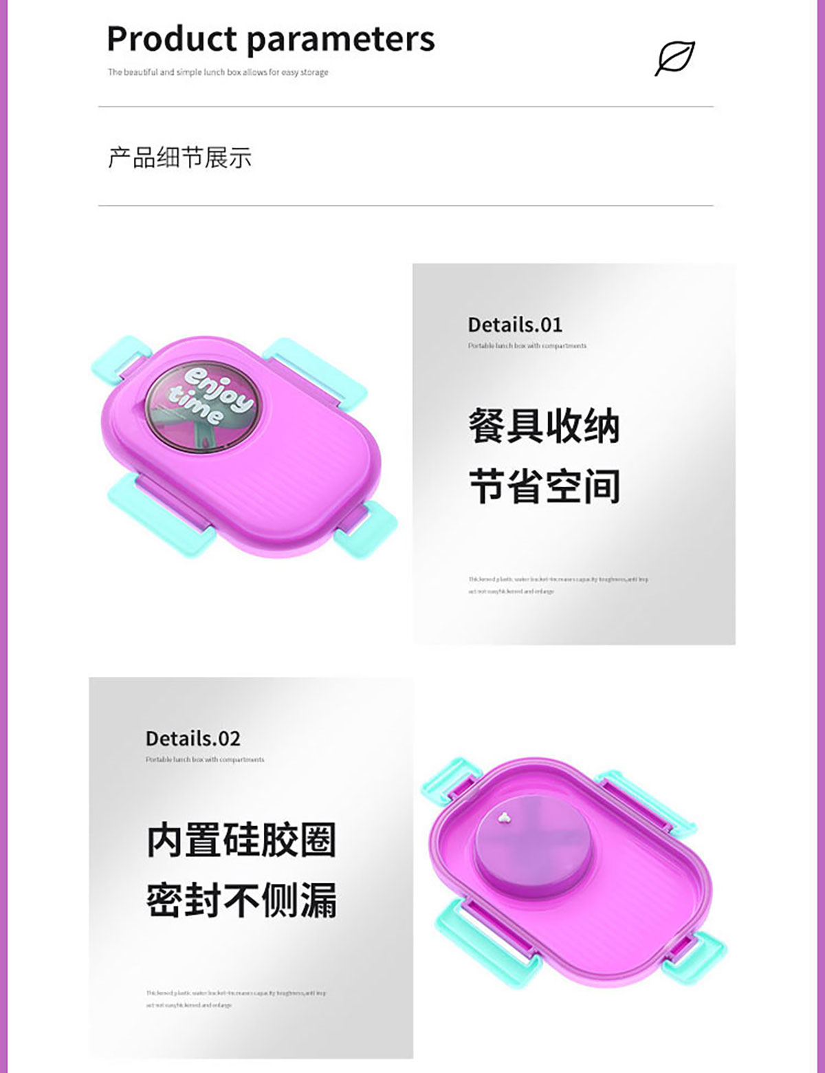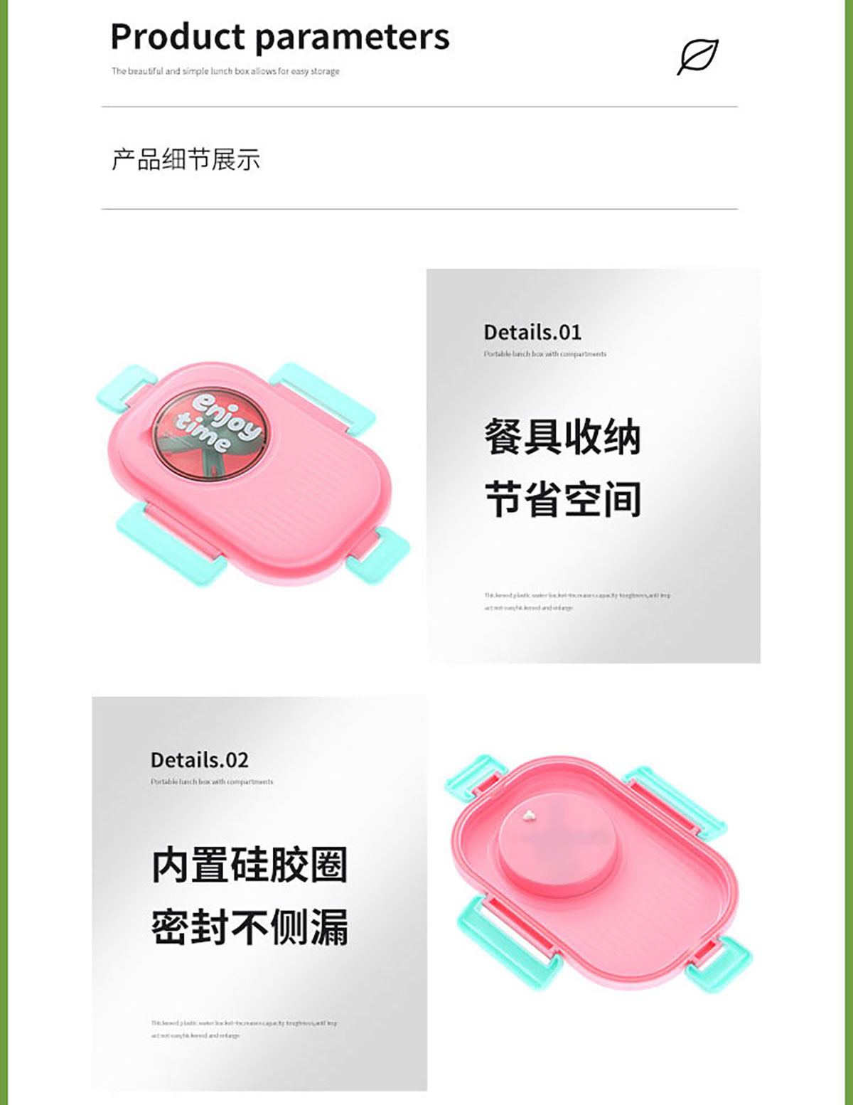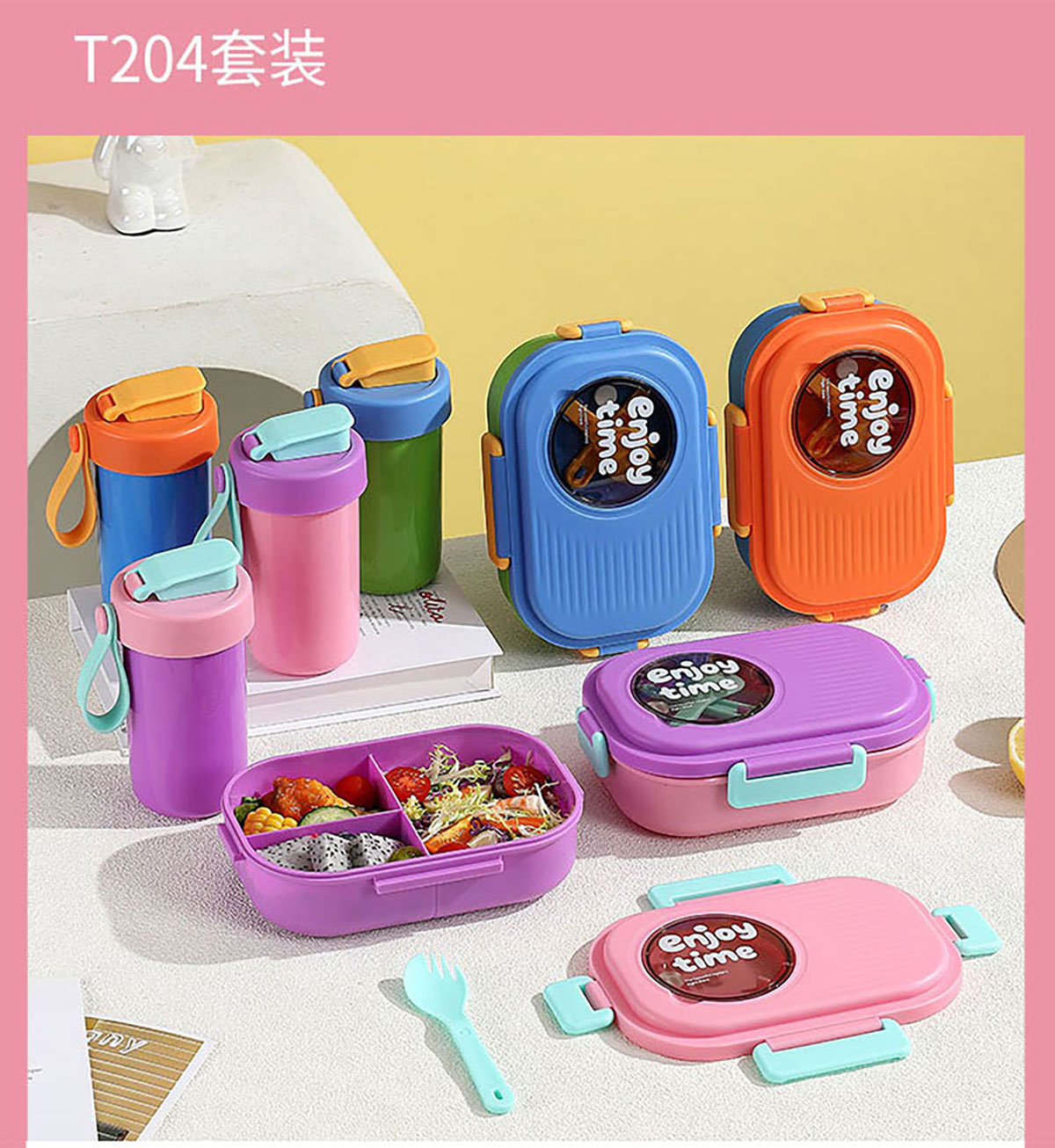 SWY-T204(套裝款):飯盒:215*149*72mm/1000ml 水壺:直徑82*高161mm/480ml